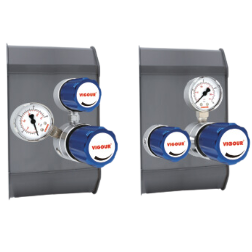Panel redukcyjny jednostopniowy, dwustronny automatycznie przełączany, obsługuje butle dwustronnie (lub wiązki, lub ich kombinację). Kiedy ciśnienie po jednej stronie (pierwotnej) spada do zadanej wielkości, panel przełącza się na pobór z drugiej strony. To oznacza, że możliwa jest zmiana butli bez przerywania przepływu gazu. Po wymianie butli po stronie pierwotnej, należy przełączyć dźwignię tak, że druga strona (aktualnie dostarczająca gaz) staje się strona pierwotną. Najważniejsze cechy: