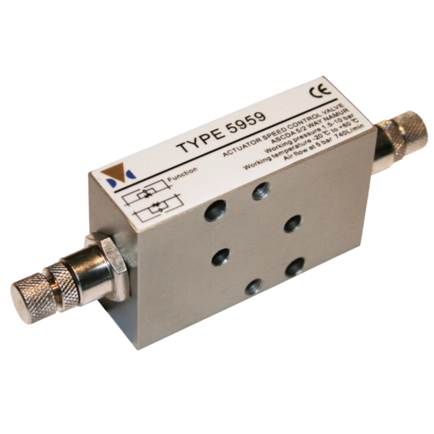 Zawór dławiąco-zwrotny, mocowany bezpośrednio do napędu obrotowego, służy do regulowania szybkości otwierania i zamykania armatury sterowanej napędem obrotowym pneumatycznym.