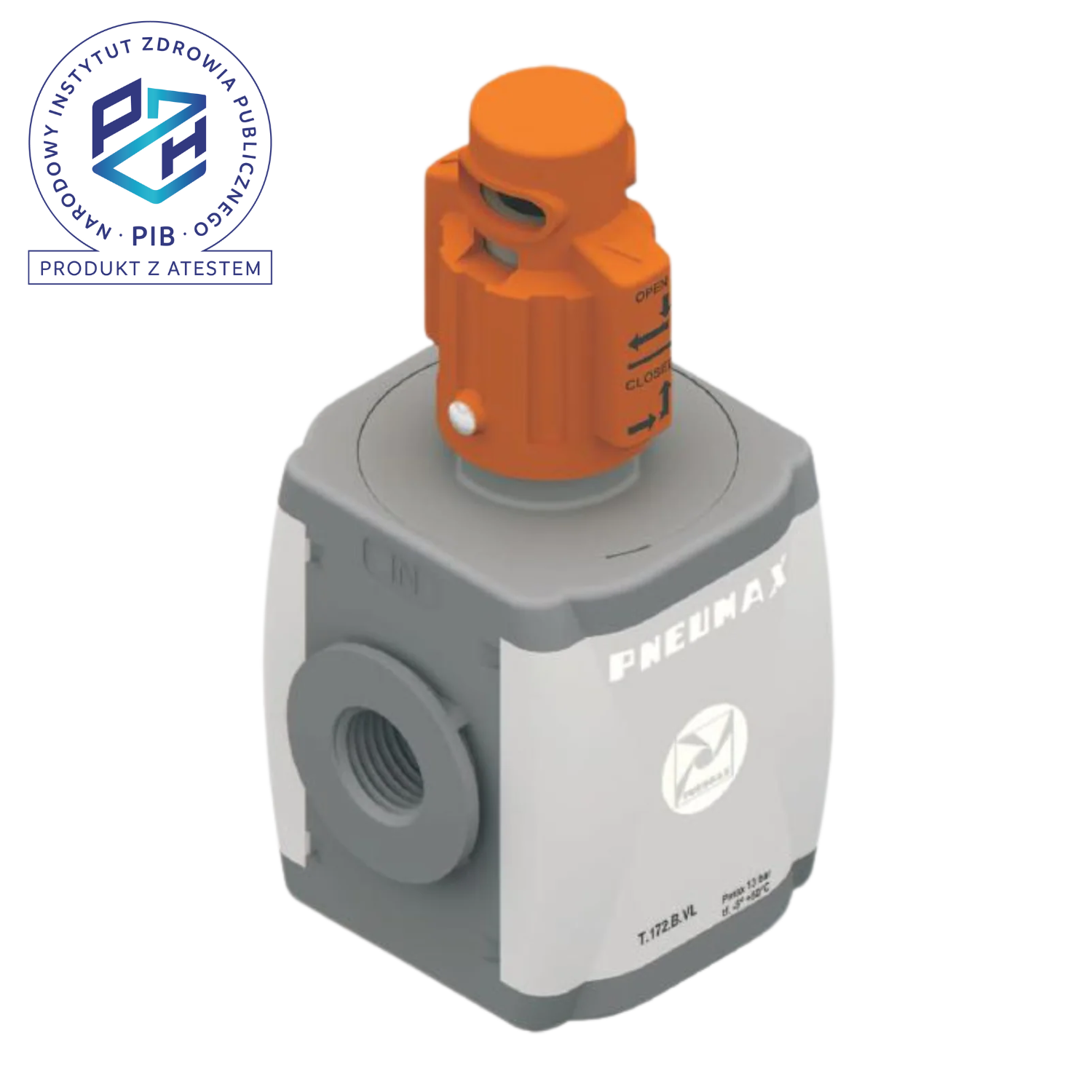 Przyłącza: 1/8″ – 1/4″ – 3/8″ – 1/2″ – 1″, przepływ do 14 000 Nl/min.