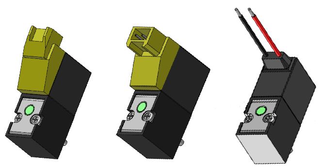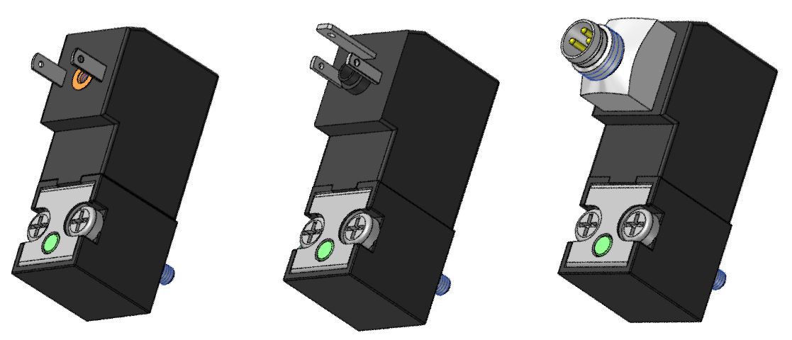 Elektropiloty 3/2 o szerokości 22 mm zaopatrzone w korpusy z przyłączami G1/8″.