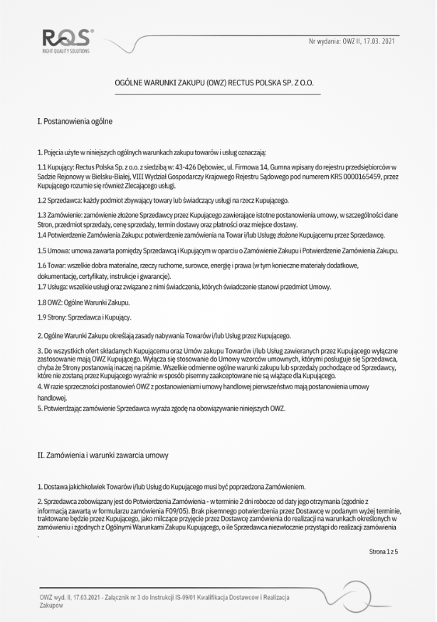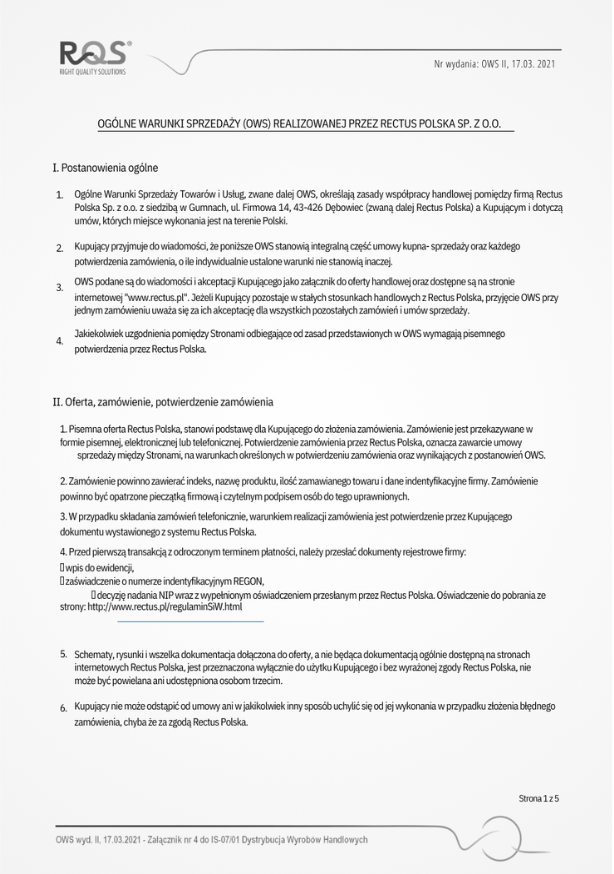 Ogólne Warunki Sprzedaży ( OWS ) dla kontrahentów krajowych