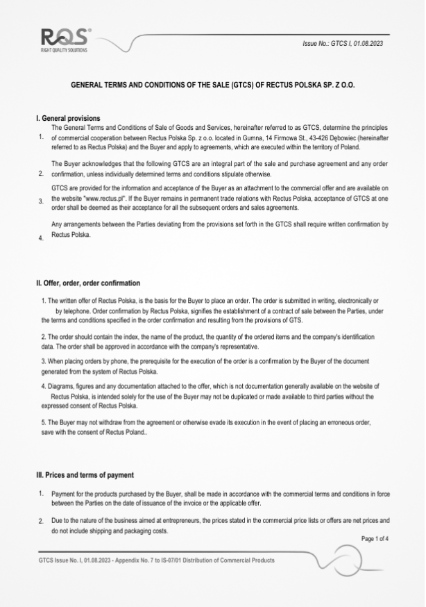 Ogólne Warunki Sprzedaży ( OWS )dla kontrahentów zagranicznych